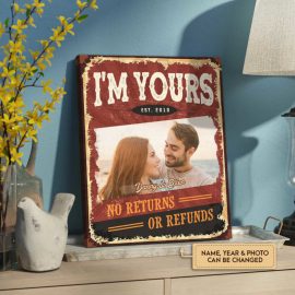 Funny Couple I’M Yours No Returns Or Refunds Custom Couple Photo Canvas And Poster$36.99 – $169.96