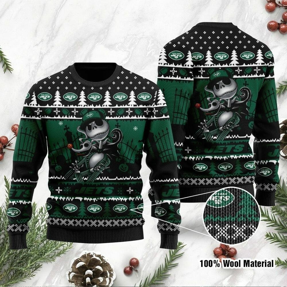 New York Jets Jack Skellington Design Ugly Christmas Sweater