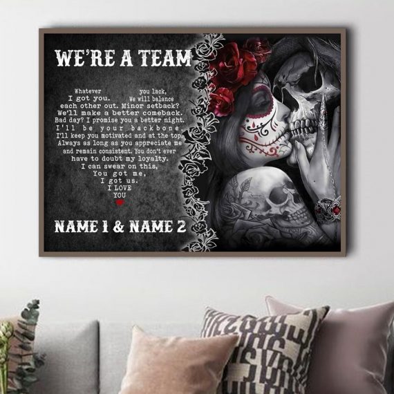 Personalized Couple Skull Were A Team Him Her Canvas And Poster