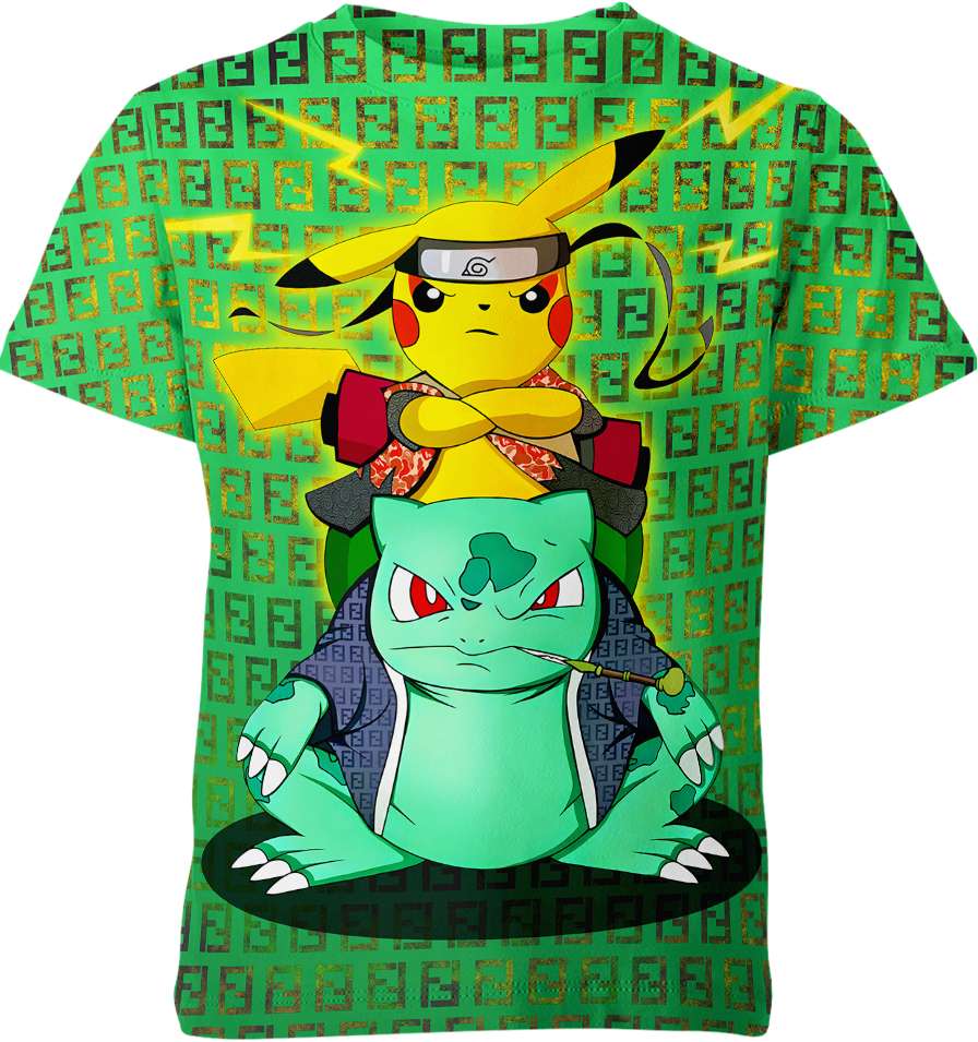 Pikachu Bulbasaur Fendi Pokemon Anime Short Sleeve For Men Women I