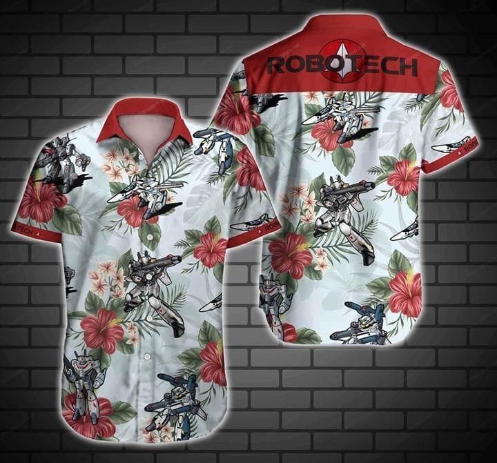 Robotech Anime Floral Style Short Sleeves Button Jersey For Men And Women