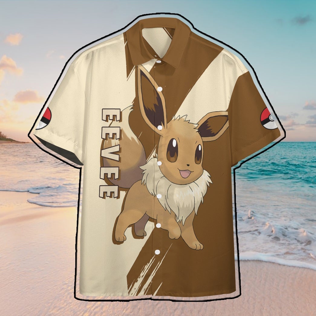 Anime Pokemon Eevee Hawaiian Style Short Sleeve Jersey For Men And Women