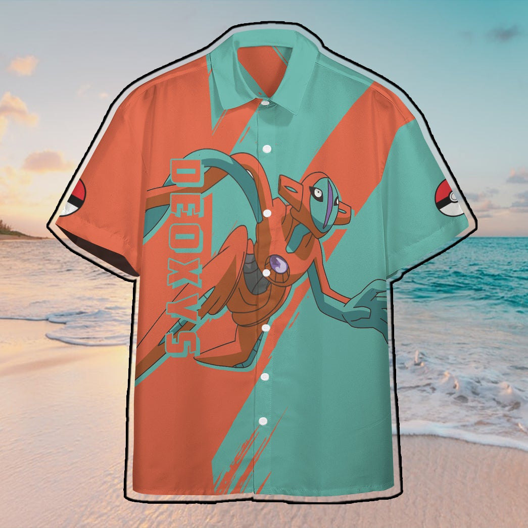 Anime Pokemon Deoxys Custom Hawaii Button Shirt